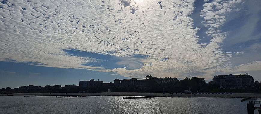 Sr. M. Katharina MockWenn ich im Urlaub bin, gehe ich sehr gern in die Natur. Besondere Erholung finde ich beim Beobachten der Wolkenkonstellationen am Himmel. Vor ein paar Jahren habe ich dabei eine besondere Konstellation beobachtet und fotografiert. Die Wolkendecke über der Ostsee öffnet sich und mit viel Fantasie sieht man von den Wolken eine Taube an den Himmel gemalt. Darüber öffnet sich der Himmel.