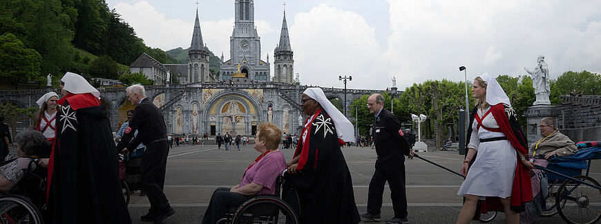 Eine besondere Hilfe ist uns dabei immer die Gottesmutter gewesen. Sie hat dazu geführt, dass in den letzten 70 Jahren die Begleitung von kranken und behinderten Menschen auf der Pilgerfahrt nach Lourdes zu einer wesentlichen Aufgabe für die Ordensmitglieder wurde. Wenn im Kreis des Ordens heute über den Glauben gesprochen wird, staunt man, dass bei der Mehrzahl der Zeugnisse die Wallfahrten nach Lourdes konstitutiv für den je eigenen Glauben sind.