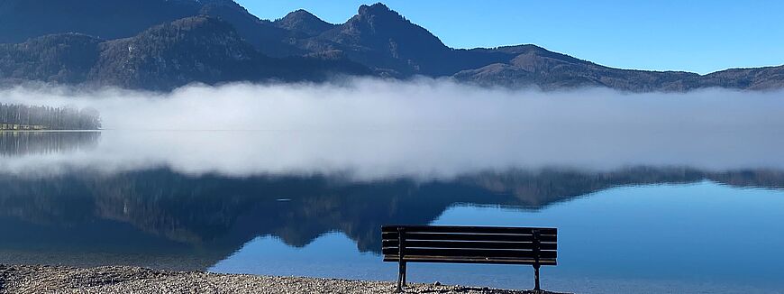 Auf der Rückreise von Tirol über den Kochelsee, vorbei am Kloster Schlehdorf, musste ich anhalten, um diese wunderbare Stimmung am Ufer des Sees mit Schatten und Nebel einzufangen. Atemlos und staunend standen noch einige Menschen da und bewunderten dieses Naturschauspiel. Manches ist nebulös, noch schweigend verborgen, in den Tiefen ruhend, um in einer Klarheit aufzusteigen, ans Licht zu kommen. Wer an Christus glaubt, dem wird der Geist der Kraft, der Liebe und der Besonnenheit in die Hände und ins Herz gelegt. So tröstet Paulus schon Timotheus in seinen damaligen Herausforderungen in der Leitung der christlichen Gemeinde (2 Tim 1,7).