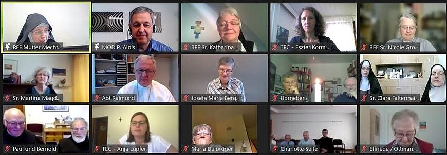 Thema war „Es brennt. Welt. Kirche. Und ein Dornbusch“. Nach einem Grußwort von Kardinal Joao Braz de Aviz, dem Präfekten der Religiosenkongregation im Vatikan, folgte ein Beitrag von Prof. Franz Sedlmeier, der fundiert die Dornbuschgeschichte erschloss und klar strukturiert für die Übertragung auf das eigene Leben auslegte. Prof. Sr. Margareta Gruber OSF ging dem dunklen Feuer der Ostererfahrung nach und untermalte ihre Ausführungen mit höchst originellen Illustrationen. Mutter Mechthild Thürmer OSB erzählte bewegend von ihren Erfahrungen mit Kirchenasyl – und von dem ihr drohenden Gerichtsverfahren, das in einer empfindlichen Gefängnisstrafe enden kann. Vielfältige Erfahrungen der Gastfreundschaft teilten die beiden Franziskaner P. Paul und P. Bernold vom Kloster Marienthal im Rheingau. Dann folgte ein Beitrag zu ökumenischen Perspektiven von Synodalität, der bei allem Ernst so humorvoll war, dass der Moderator, P. Alois Schlachter, die beiden Protagonistinnen, Sr. Dr. Nicole Grochowina und Sr. Dr. Katharina Kluitmann, für die Ottmaringer Tage 2022 als Kabarettistinnen engagieren wollte.Verschieden gut genutzte Möglichkeiten des Austauschs und Momente des Gebetes durchzogen den lebendigen Vormittag, der auch technisch, zeitlich und sprachlich (italienisch-deutsche Übersetzung und umgekehrt) sehr gelungen war. Am Ende war das einhellige Urteil: Auch digital kann der Funke überspringen.