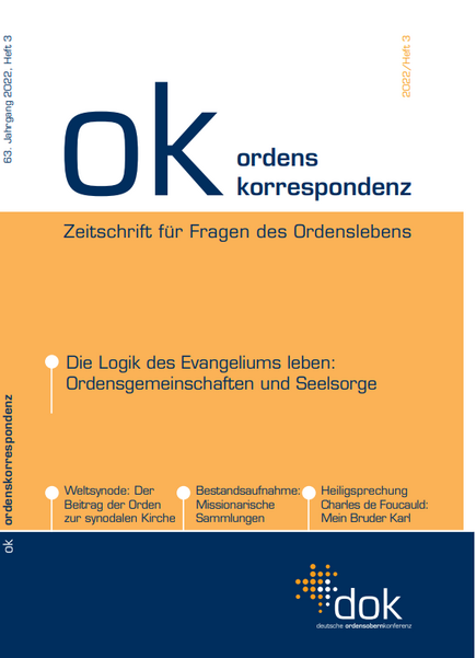 Die neue Ausgabe der Ordenskorrespondenz hat den Themenschwerpunkt „Die Logik des Evangeliums leben: Ordensgemeinschaften und Seelsorge“. Im Vorwort des Heftes meldet sich der DOK-Vorsitzende, Br. Andreas Murk OFMConv., zu Wort: