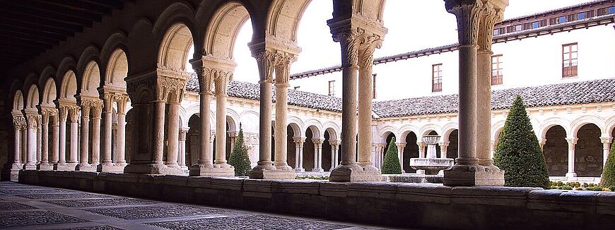 Gerd Eichmann, CC BY-SA 4.0, via Wikimedia CommonsIn diesem Ort in Burgos, der Teil des Camino del Cid ist, steht eines der bekanntesten spanischen Klöster. Die benediktinische Abtei selbst könnte mit dem Leben von Rodrigo Díaz de Vivar in Verbindung stehen, einer historischen und legendären Figur der Reconquista, deren Leben den wichtigsten canto de gesta der spanischen Literatur inspirierte. Der Held soll einen Teil seines Besitzes für die Stätte gestiftet haben. Santo Domingo de Silos ist auf jeden Fall ein künstlerisches Ziel ersten Ranges. Grund dafür sind der schöne romanische Kreuzgang, der sich durch einen Innenhof mit zwei übereinander liegenden Ebenen auszeichnet, und der Garten mit einer großen, über 25 Meter hohen Zypresse.