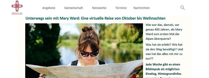 400 Jahre nach Mary Wards erstem Weg über die Alpen will sich die Congregatio Jesu (Mary-Ward-Schwestern) gemeinsam mit ihr auf diese Reise machen. Diese virtuelle Reise begann im Oktober und endet an Weihnachten. Die Schwestern bieten auf ihrer Internetseite vier mögliche Zugänge an: