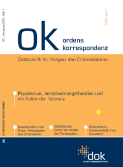 Im Juli vergangenen Jahres fand ein digitales „Informations- und Austauschtreffen“ für Höhere Oberinnen und Obere statt. In einem Schwerpunkt der Veranstaltung ging es um die zunehmend um sich greifenden Populismen und Verschwörungserzählungen sowie um die Frage, wie man ihnen widerstehen kann. In überarbeiteter Form dokumentiert die Ordenskorrespondenz den Vortrag der Referentin Christine Böckmann. In weiteren Artikeln wird die Thematik entfaltet und um die Frage nach einer Kultur der Toleranz im Umgang miteinander geweitet. Braucht es eine neue Sprache, um weiter miteinander im Gespräch bleiben zu können? Die neue Ordenskorrespondenz berichtet von bemerkenswerten Initiativen aus dem Ordensbereich, die einen Beitrag dazu leisten, den gesellschaftlichen Diskurs offenzuhalten: Unter anderem stellt P. Tobias Zimmermann SJ das online-Magazin „Sinn und Gesellschaft“ vor, das sich an jene richtet, die „daran glauben, dass es sich lohnt, sich für eine bessere Welt einzusetzen.“ Das Magazin konnte bereits im ersten Jahr 60.000 Leserinnen und Leser erreichen. Der Artikel von P. Zimmermann ist hier auf orden.de frei zugänglich. Dr. Michael Schlagheck schildert ein Projekt der Neusser Augustinerinnen und ihrer Stiftung Cor unum: Das „Augustinus Forum“ will in der Stadtgesellschaft Räume für Pluralismus, Lernbereitschaft und Zweifel eröffnen.