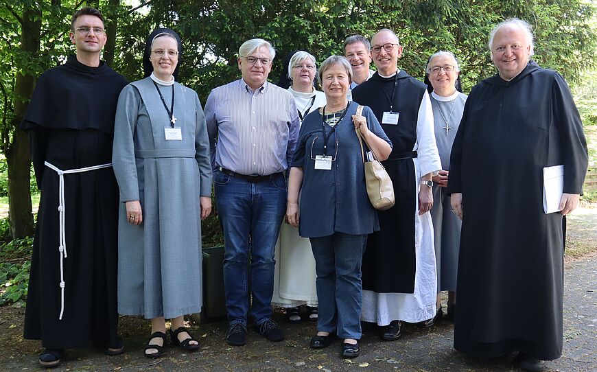 v.l.n.r.: Br. Andreas Murk OFMConv (Vorsitzender), Sr. Maria Thoma Dikow SMMP (Stellvertretende Vorsitzende); Fr. Rudolf Knopp OH, Sr. Katharina Hemmers OP, Sr. Hildegard Schreier MC (Generalsekretärin bis Juni 2023), P. Peter Kreutzwald OP, P. Bruno Robeck O.Cist. (Mitglied des erweiterten Vorstands bis Ende 2023), Sr. M. Karin Berger OSF (Mitglied des geschäftsführenden Vorstands), Abt Johannes Schaber OSB. Nicht im Bild: P. Dr. Stefan Tertüne SCJ (Mitglied des geschäftsführenden Vorstands)
